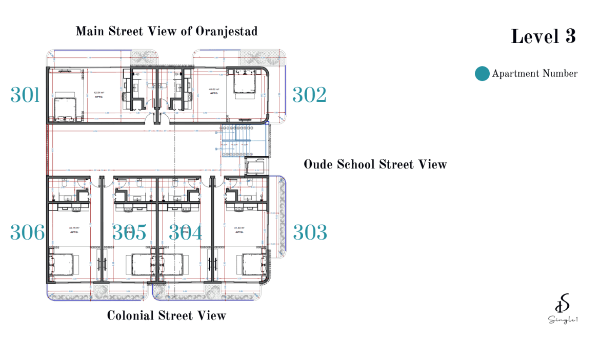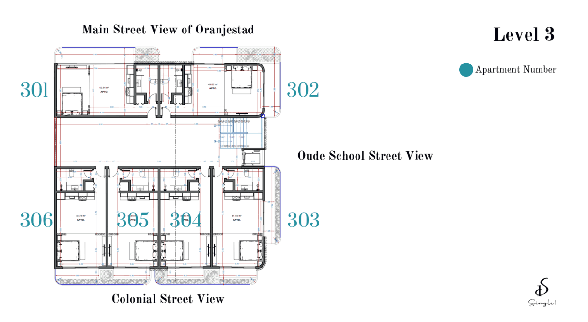 Apartment 305 is a stylish, fully furnished unit on the Third Level, with 45.96m2 including balcony Overlooking the Colonial Street & Ocean View thoughtfully designed for comfort and elegance. Featuring high-quality finishes and smart functionality, this space seamlessly blends luxury with convenience—ideal for professionals seeking a vibrant yet private lifestyle in Aruba.